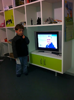 We spent the rest of the day at home, reading books and snuggling, as Alex was getting increasingly crabby and tired i.e. sick. I put him down on the early side, but he woke up 6 times before midnight and was pretty feverish. I had - stupidly - left our thermometer at home, but not the Children's Advil, which he took at some point in the night and which seemed to have restored him to almost normal. I had a chance to talk to my friend here today on the phone and mentioned this to her and she told me that these kinds of medications are only dispensed with a prescription here, so I was doubly glad I had brought some.